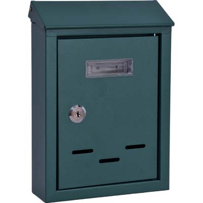 In lamiera verniciata. Apertura tetto e frontale. Serratura a cilindro con doppia chiave. Con portanome in plastica trasparente.