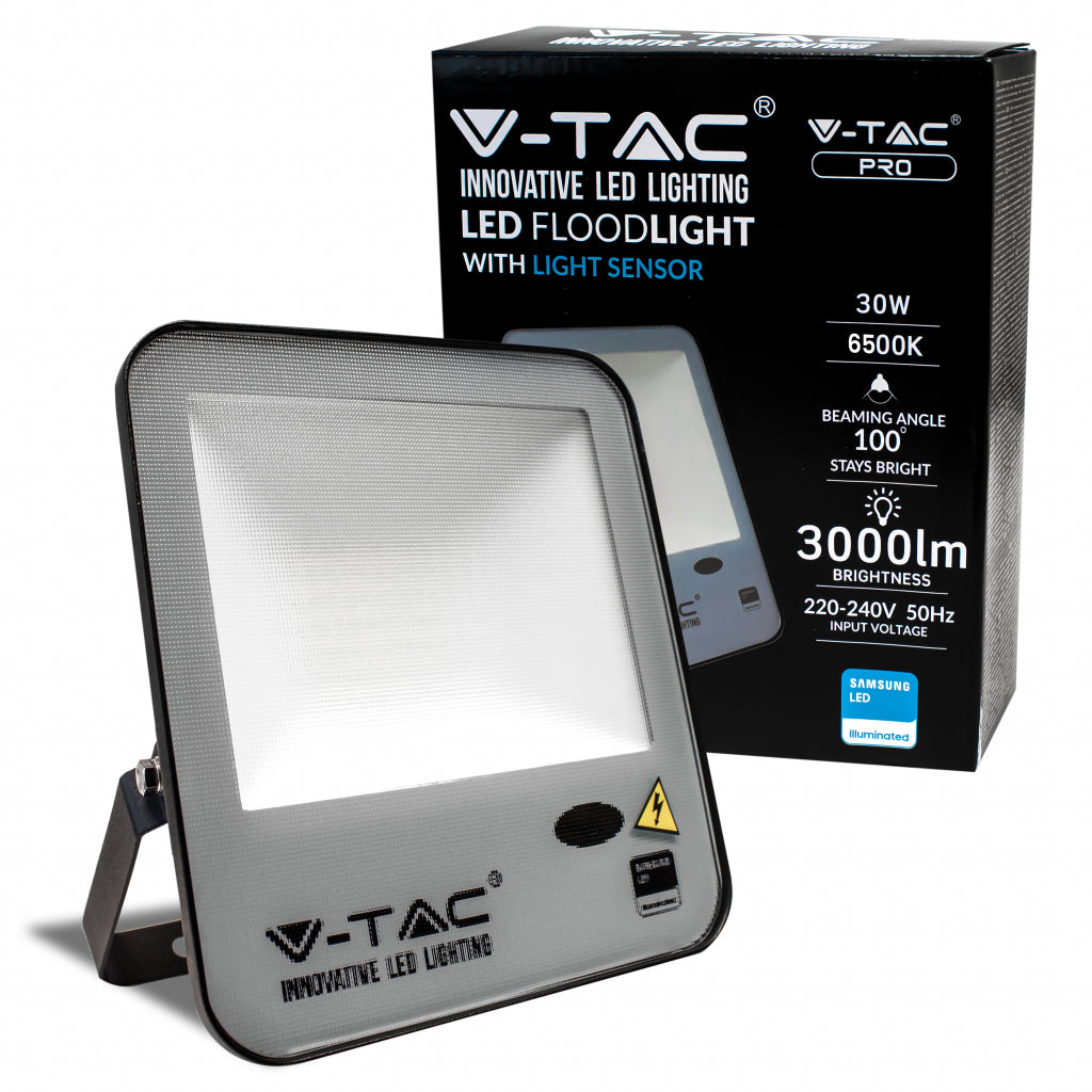 30W LED Sensor Day Light Floodlight SAMSUNG CHIP 100LM/W Black Body 6500K