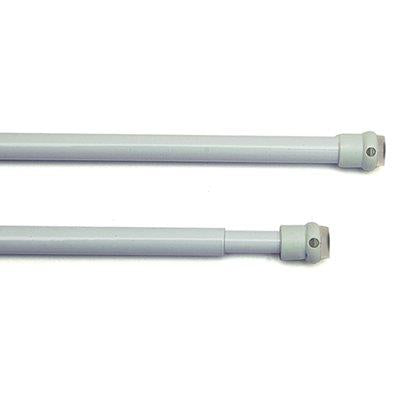 In acciaio verniciato. Con finali in ABS. Allungabile a molla e cancanetti in acciaio.