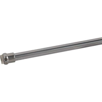 In acciaio verniciato. Con finali in ABS. Allungabile a molla e cancanetti in acciaio.