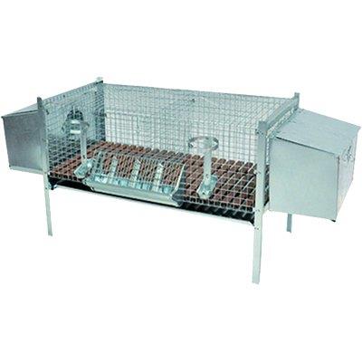 In lamiera con rete zincata pieghevole. Con nidi esterni e fondo in plastica.