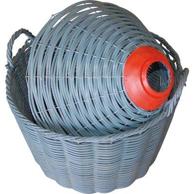 In vimini sintetico e struttura in filo di ferro zincato. A bocca stretta.