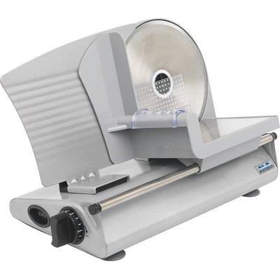 Scocca in acciaio verniciato con resine epossidiche e base in alluminio pressofuso. Interruttore di sicurezza ON-OFF e regolazione taglio a manopola. Lama in acciaio temperato. Carrello ribaltabile. Piedini in gomma antiscivolo. Conforme alle normative CE relative ai materiali destinati a venire a contatto con gli alimenti. Peso Kg. 5,1. Dimensioni: Cm. 30x35, altezza Cm. 48.