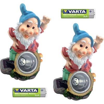 In poliresina. 1 led a luce bianca e pannello solare in silicio amorfo. 1 stilo AA Varta ricaricabile inclusa.