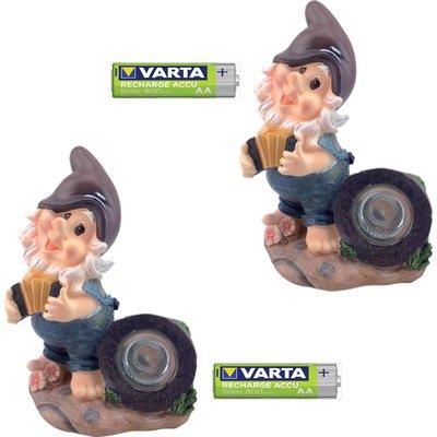 In poliresina. 1 led a luce bianca e pannello solare in silicio amorfo. 1 stilo AA Varta ricaricabile inclusa.
