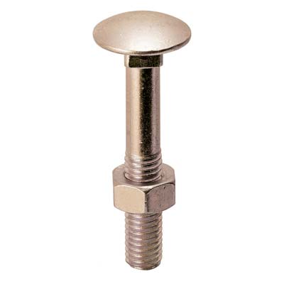 A testa tonda con quadro, parzialmente filettato, DIN 603, classe CU2. Dado esagonale DIN 555. In ottone zincato giallo.