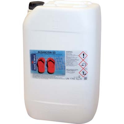 Liquido adatto a prevenire la formazione di alghe, batteri ed evitare fenomeni di acque verdi o torbide. Impiegato in combinazione con i prodotti disinfettanti combatte la carica batterica e impedisce lo svilupparsi delle alghe. Dose iniziale: Ml. 200 ogni Mc. 10 di acqua. Dose di mantenimento: da Ml. 50 a Ml. 100 ogni Mc. 10 di acqua.