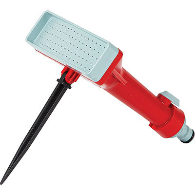 Con rubinetto di regolazione di portata e chiusura. Fornito con puntale per appoggio al terreno. Innesto rapido. In blister.