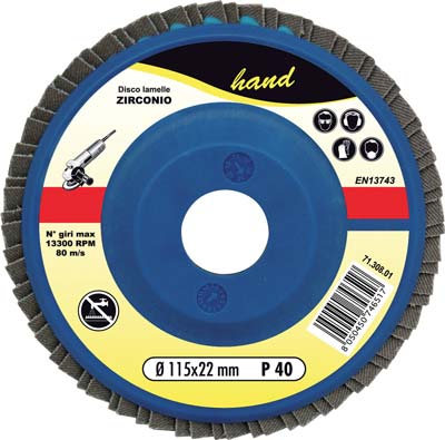 Con supporto in plastica e abrasivo allo zirconio.