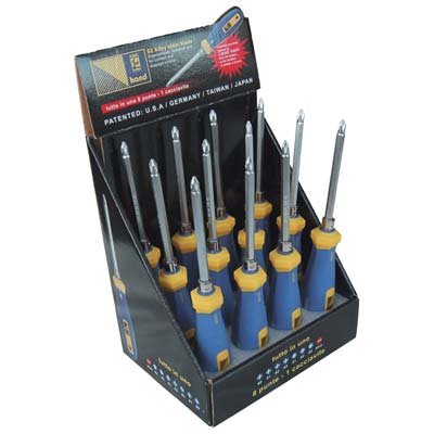Le speciali punte coprono fino a 8 misure di impronte: PH: 0, 1, 2 e 3, PZ: 1, 2 e 3, Taglio Mm. 6. Manico bimateriale antiscivolo.