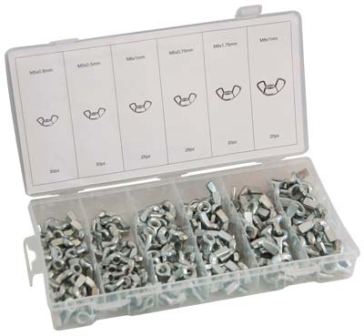 Kit da 150 pezzi assortiti, in acciaio zincato. Contenuto: Pz. 30 M5x0,8, Pz. 30 M5x0,5, Pz. 25 M6x1, Pz. 25 M6x0,75, Pz. 20 M8x1,75, Pz. 20 M8x1.