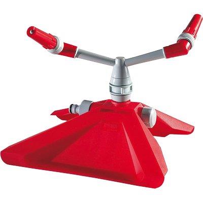 Irrigatore rotante con lance regolabili in erogazione ed orientabili in altezza, su slitta. Completo di innesto rapido e tappo. Permette connessioni in serie.