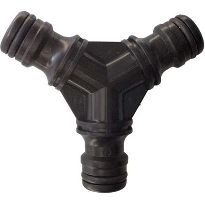 Per unire tre linee di tubo equipaggiate con raccordi portagomma rapidi. In blister.
