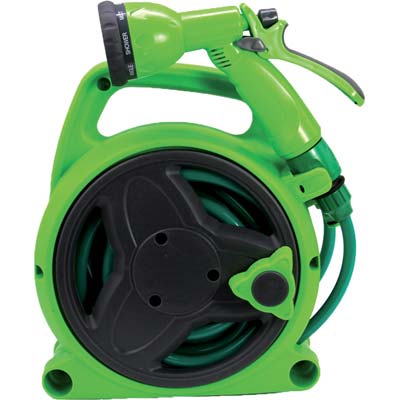 Ideale per irrigare piante, fiori e vasi su terrazzi, balconi e piccoli giardini. Con tubo da Mt. 10 e idropistola ad 8 funzioni.